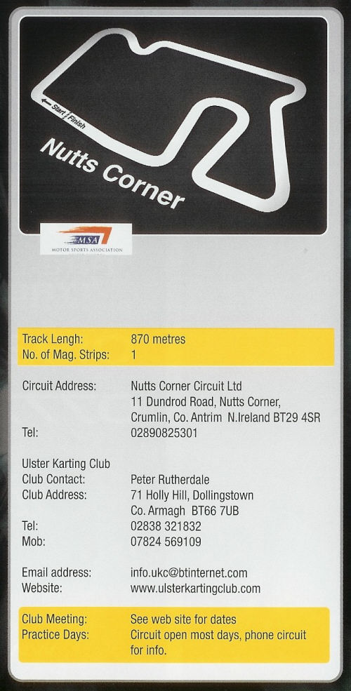 the Ulster Kart Club in Northern Ireland. The circuit is called Nutts Corner