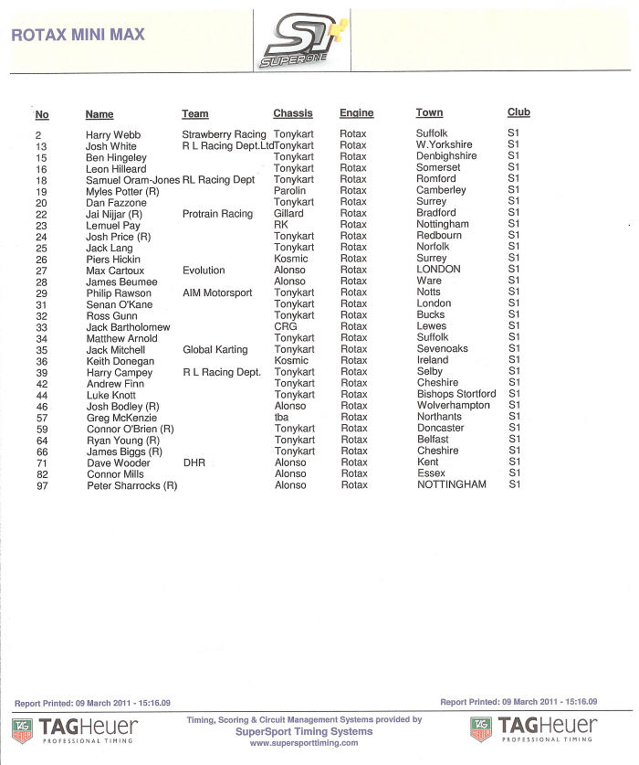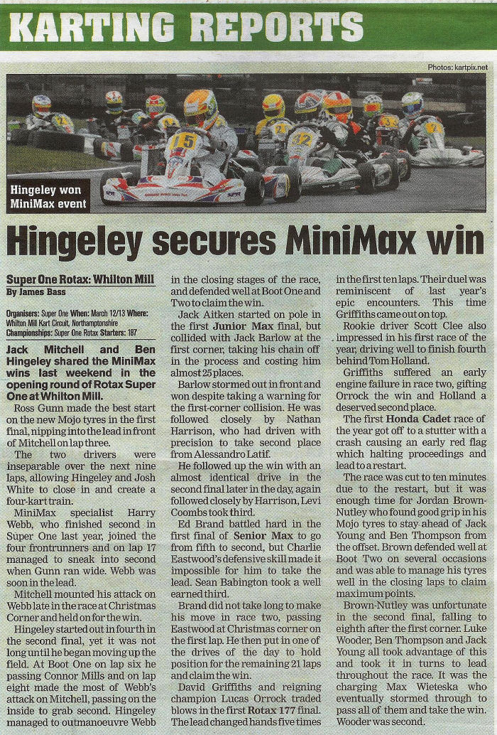 the Whilton Mill Kart Club on March 12th and 13th. On Saturday Gunn