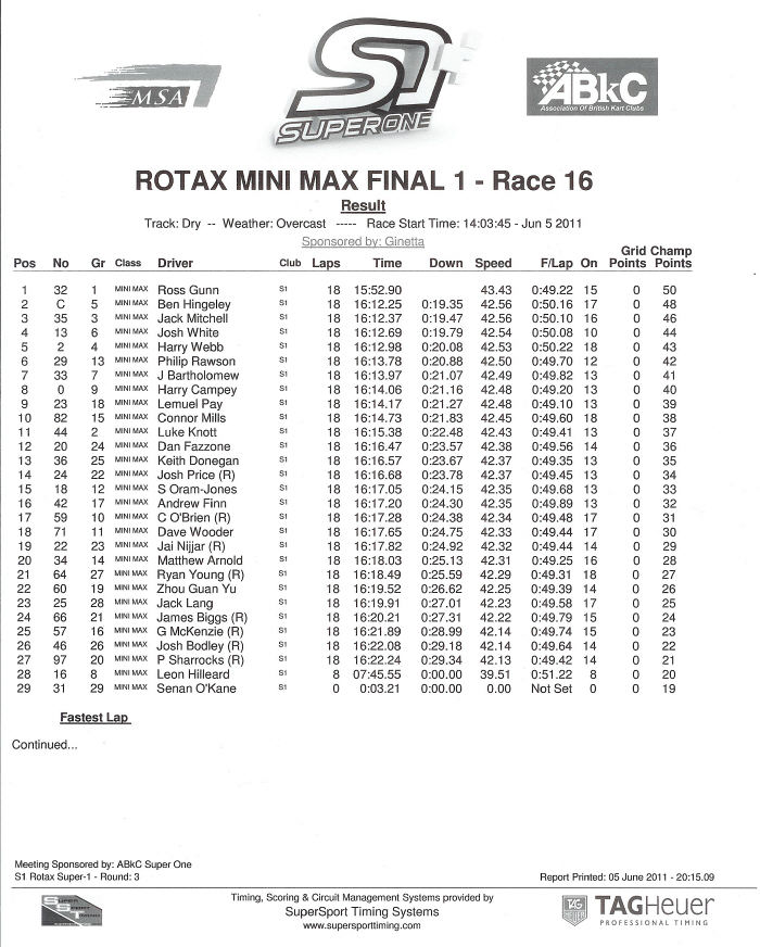 bearing in mind this was Gunn's first Mini Max Super One outing
