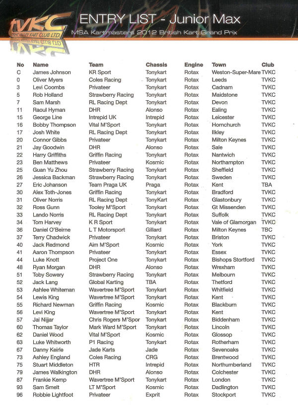 Gunn was drawn in 29th position, there being 32 karts in the race!