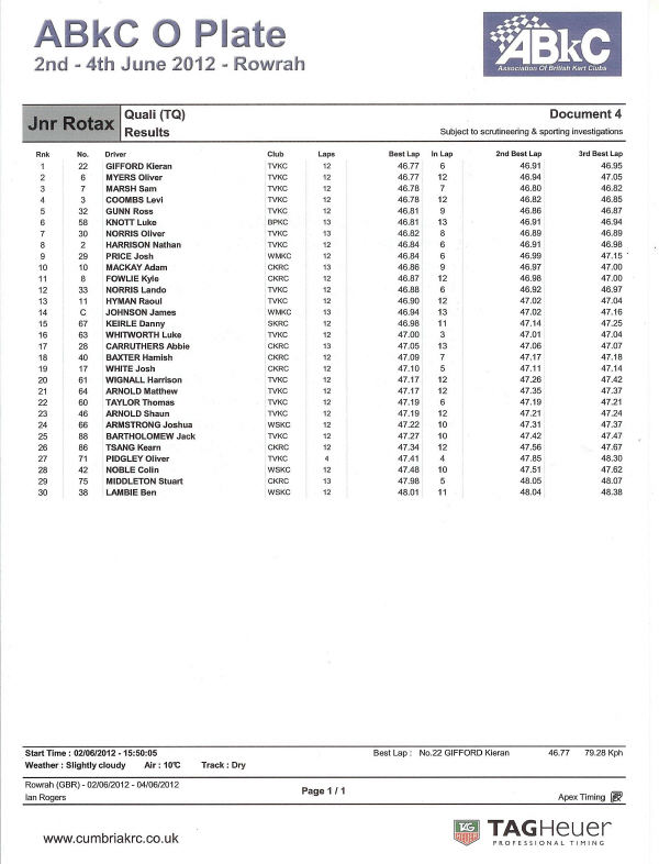 that he had been the fastest Junior Rotax driver at the meeting!