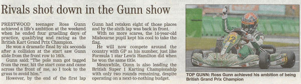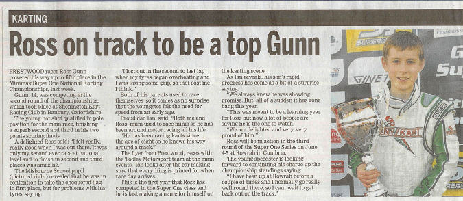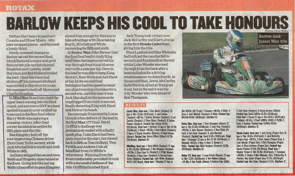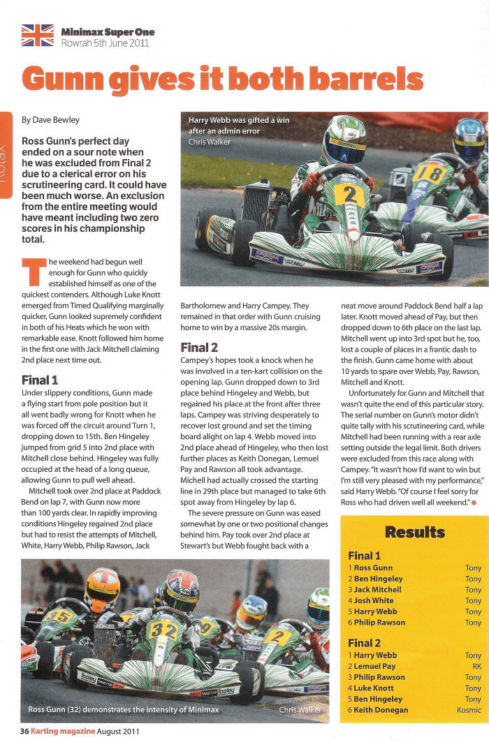 summary, an excellent showing in Gunn's first Junior Rotax race ..