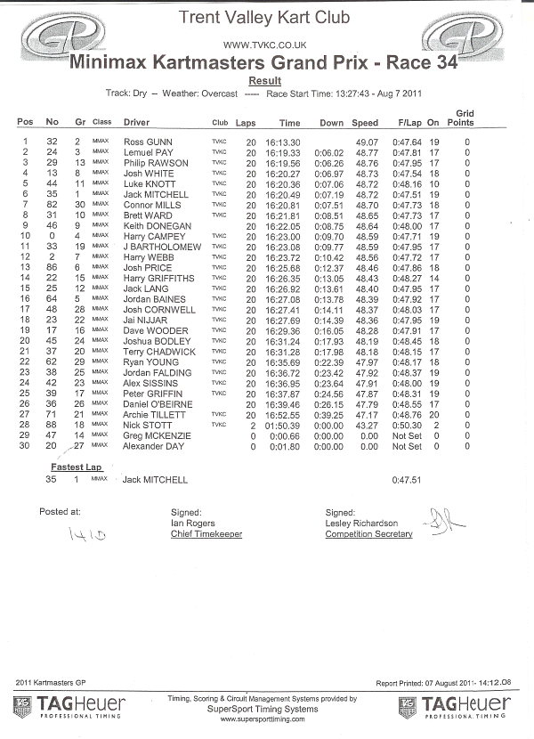 not used at this TVKC Championship round. Gunn was drawn 21st on