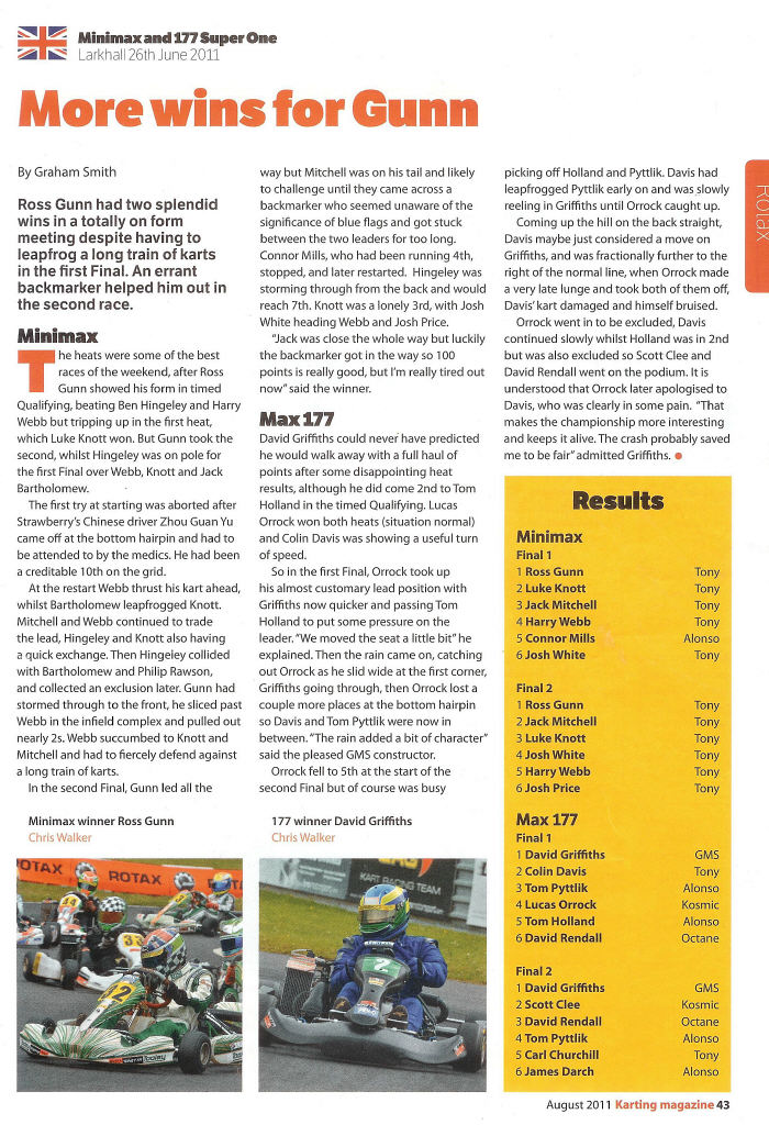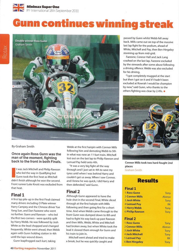 In the December issue of Karting magazine .. Ross