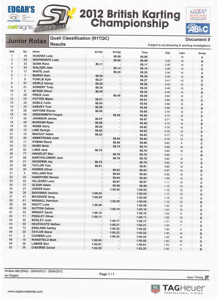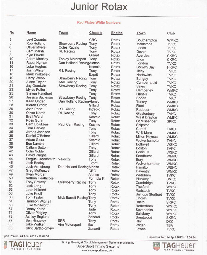 Kart Club near Daventry, Northamptonshire. The total entry for the