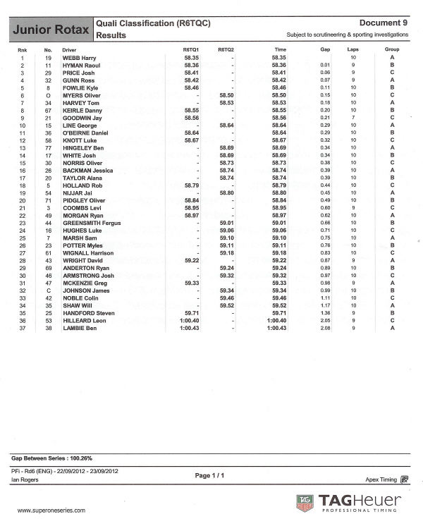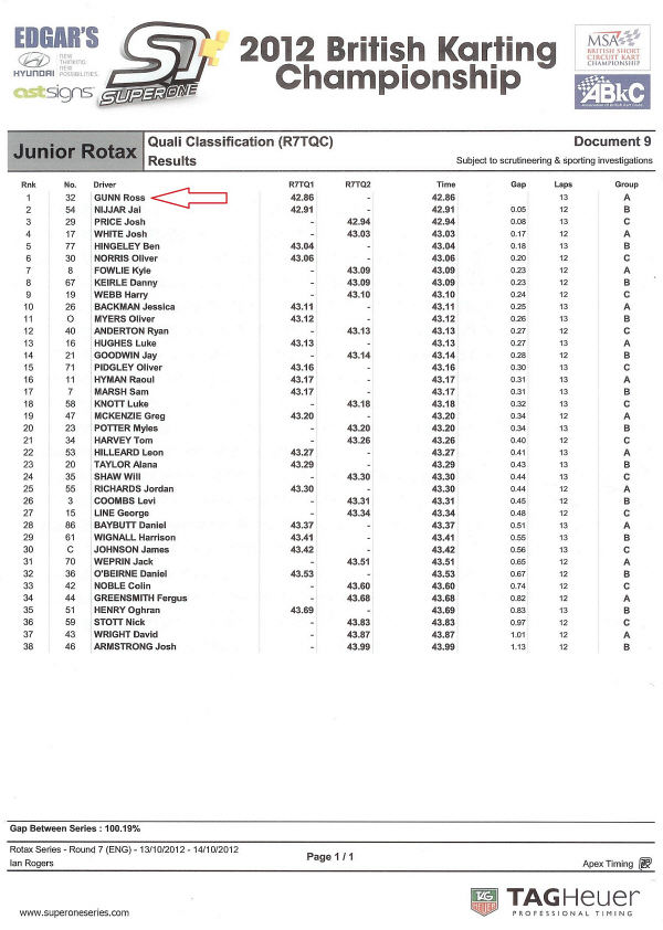 0.14 s off the fastest lap of Luke Knott. In Gunn's second heat