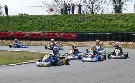 winner after 11 laps. Sunday June 7th ~ Sunday was to be dry all day.... in my second heat my grid position was 9th {as in Heat 1}. On the opening lap I made a bad start dropping down to 15th position and finished in a disappointing 11th position. In the Final 1 I started in 8th position and finished in 8th position. In Final 2, 4 karts came together in the chicane, I rejoined in about 25th position but drove through the field, gaining 3 positions on the last lap, to finish 7th! The results from this meeting have improved my Championship position ~ I'm now lying 8th in the Championship. In summary, a much better meeting for me, although there is always room for improvement and a bit more luck! |