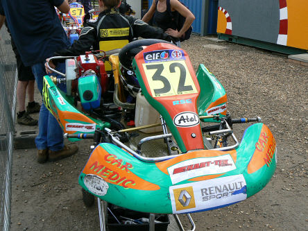 Saturday May 9th ~ the second round of the Super One series took place at the Shenington Kart track {see my links page for details}. It is at this circuit that I'm currently the 2008 Champion and lap record holder, so I was hoping for some success in this double-header event. After getting good times on the Friday test day using my 'old' Zip Blade, we decided to keep to the same set-up. Problems developed in the assembly area, as I was about to qualify. For some unknown reason {although carbon deposits were later found in the carburettor} the kart wouldn't start! After changing carburettor, I managed to make qualifying, but with a setting that wasn't 'the best', my time only positioned me as 12th fastest. I was 0.36s off the fastest qualifying time, which at this level of karting is 'considerable'. I started Heat 1 in this position and finished 10th, obtaining the fastest lap. Sunday May